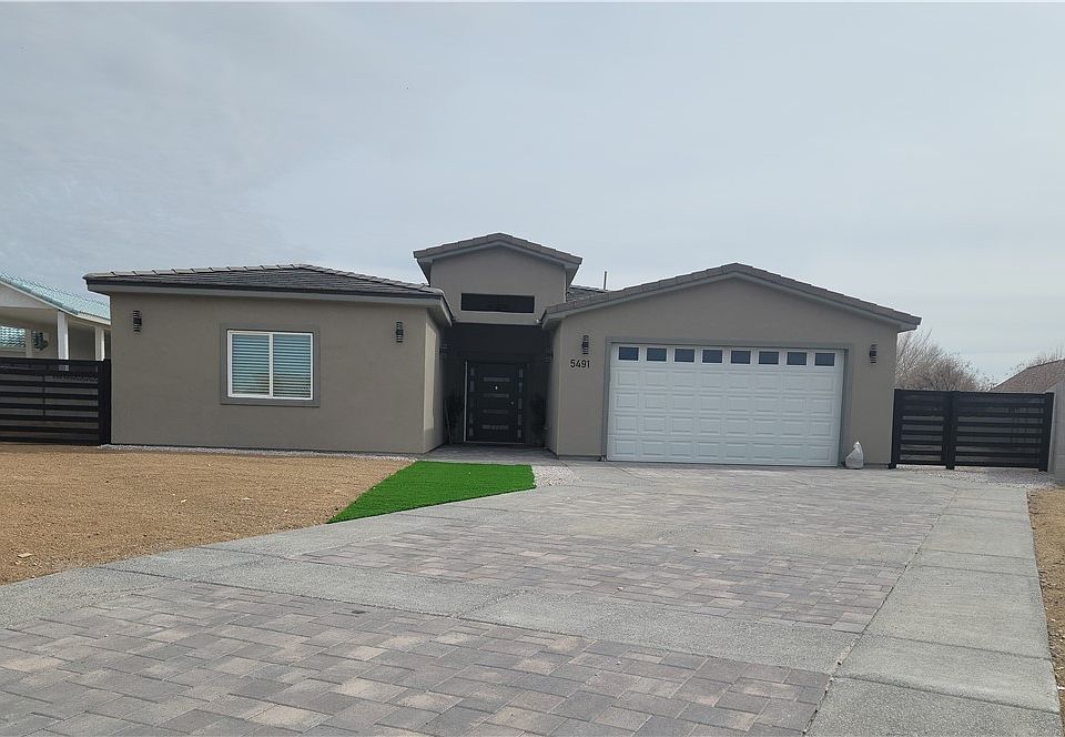 Beautiful home! Custom contemporary features throughout and just over a year old. Spacious open floorplan. Upgraded kitchen cabinets to the ceiling. Spacious center island with quartz counters and waterfall accents. All appliances are stainless steel and included with this amazing home. Custom flooring throughout. The living room and dining room offer a large open floor plan for entertaining including a fireplace. Primary suite is spacious with a walk-in closet and bathroom with a stand alone soaking tub and an open custom shower. All rooms have ceiling fans. Large backyard and plenty of room for your dream backyard, RV Parking, additional casitas or storage. Just 50 minutes to Las Vegas from this south Pahrump planned community with a dog park, walking/play park and community center for neighborhood monthly events. Gorgeous mountain views with stunning sunsets and stars in the sky at night. Must see!