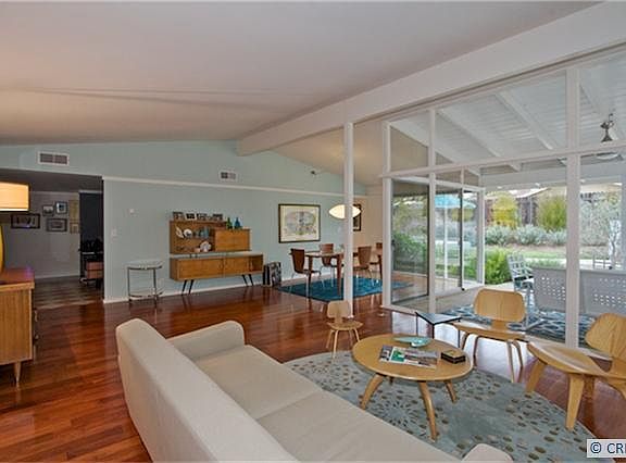 This is a rare opportunity to own a spacious midcentury modern home for a moderate price. Built in 1959, this stylish residence features three large bedrooms and two bathrooms in more than 2,200 square feet of living space. Recent upgrades include Santos Mahogany floors throughout most of the interior, a modern ceiling fan in the living room, a Nelson bubble lamp in the dining area, and architectural outdoor entertainment spaces and improved landscaping in the backyard. The property sits on an 11,000+ square foot lot near beautiful Los Coyotes Country Club. Note: this is a short sale and thus it is subject to lender approval.