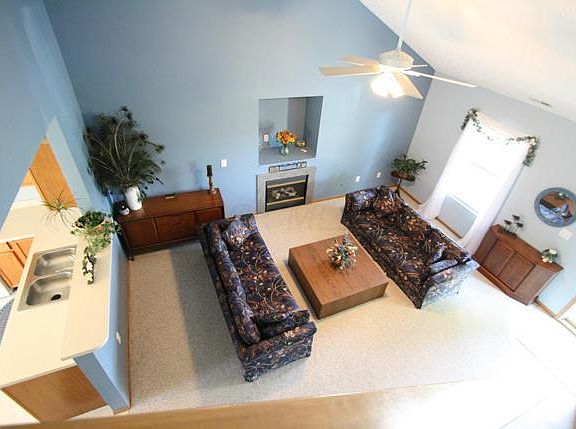 Fantastic opportunity to own in this 2 bedroom PLUS loft free standing condo conveniently located close to shopping and showing pride of ownership throughout. Overlooking the community pond, park and playground this home offers a 2 car garage, soaring ceilings,spacious kitchen with extra bank of cabinets and master with walk in closet and private bath. Relax in your open floor plan great room with gas log fireplace or on your long stretch of front porch. Master suite upstairs and down include private baths and walk in closets. Well maintained complex.