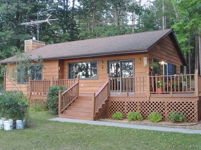 If you are looking for a pleasant house on a pristine crystal clear lake . . . Look no further. This lovingly maintained stick built home on Silver Lake is just for you. Western exposure gives you great sunsets on the wrap around deck. Open concept with two bedrooms and full bath on the main floor. The lower level has a newly refurbished family room with wood fireplace and a full bathroom. Another bedroom could be available with placement of an egress window. Property has 175 feet of swimming frontage and a mess of good fishing. Swim, fish, boat, kayak or just sit back and enjoy the views. Lot size is approximately 1.5 acres and is a very private setting. Central air is included along with a 2 plus detached garage. House is immaculately clean. This house won't last long!