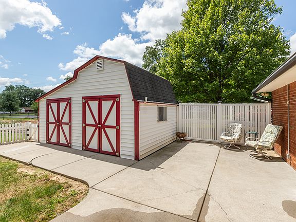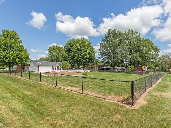 You will love this super cute ranch on a corner lot in New Palestine! This meticulously maintained home was the original model home for New Pal Village! And... there is a 4/car attached garage. The large corner lot offers entry from the front or the side street. Large backyard is fully fenced and has a double mini barn with room for everything! The added a sunny sunroom that adds more space for entertaining. The home has 3 bedrooms and 2 full bathrooms with charming tile backsplash and shower. The large kitchen/dining area with custom built in china cabinet is great for entertaining. The built in Jenn air grill with down draft vents makes inside cooking a breeze (recently serviced!). New 6 panel doors, laminate flooring, newer tilt pak windows, softener, well tank, and more! HVAC system serviced every year without fail. Gas Water Heater and Furnace. Septic and well serviced yearly. Recent crawl encapsulation with new sump. Someone sure loved this home! You will too!