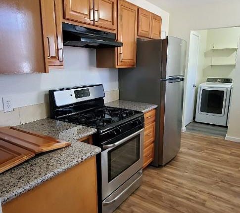 This is a two story duplex, newly remodeled with a laminated flooring throughout the first floor and carpet staring on the stairs and continue throughout the bedrooms, this unit has A/C that was install two moths ago. The master bedroom has his and hers closet giving each one the comfort space, also the kitchen has a lots of cabinets, gas stove, and a dishwasher, the laundry room area right of the kitchen. There is a one car garage with extra storage and a small storage on the back patio, the back yard its really spacious where the family can enjoy the summer time. Renter is responsible for water, gas and electric. No smoking inside de house allowed. Small dogs (up to 20 pounds) permitted, no cats allowed.