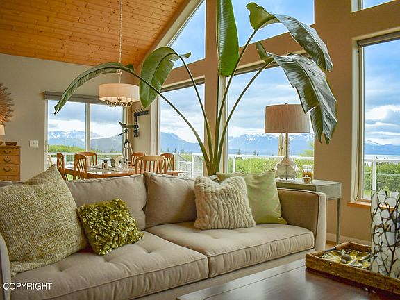 The Crown Jewel awaits; here in Triple Crown Estates. Enjoy warm sun and soak in the World Class Views of the Kachemak Bay, Kenai Mt. Range, Glaciers and the famous Homer Spit. Located just out East End Road, this stunning home has every detail you'd want in a custom home. Gourmet Custom Kitchen with Hickory cabinets and imported brick flooring; you'll never want to eat out again. Welcome Home!Beautiful landscaping that includes apple and crabapple trees, lilac and other flowering shrubs, perennials and raspberries plus delectable strawberries, and currants. A wildlife paradise.