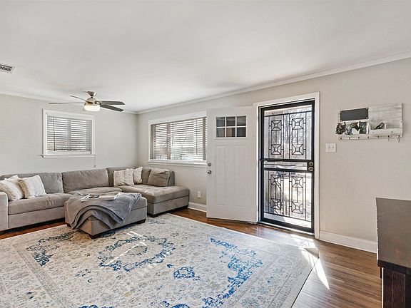 Amazing primary suite with huge closet, luxury bath with dual rain shower, and double vanity. Remodeled kitchen with custom cabinets, granite, breakfast bar, tile floor. Walk-in pantry and mud room/laundry with sink and granite tops. 4th bedroom currently used as dining, could be office. Refinished hardwoods, newer roof, HVAC, water heater. Privacy fence and new shed in back yard.