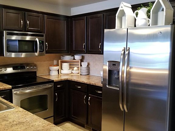 Townhome in highly sought after Wolf Ranch. This beautiful three bedroom home is move in ready. The home is located in the desirable D20 school district. As you enter this home, you'll see a beautiful kitchen with stainless steel appliances and a double sink. The open floor plan flows right into the dining area and living room, with a half bath on the main level as well. The upper level has the Master Bedroom with attached bathroom, along with two other bedrooms and another full bath. A/C, Washer and Dryer are available. The convenient, spacious, attached 2 car garage is perfect for snowy Colorado winters, and the home is only a short drive away from shopping and restaurants. Desirable location for all the Military/Air Force bases. Renter responsible for utilities. No smoking. Small pet(only dog) allowed.