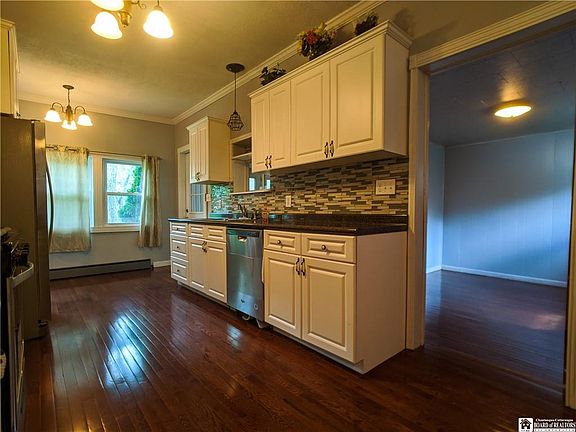 This single story three bedroom home in Allegany-Limestone School District has had many upgrades done. With a roof that was done in July 2020 as well as new gutters and eavestrouhgs. New hardwood flooring in much of the home, first floor master suite, a new kitchen, breakfast bar, and eat in kitchen with new ceramic backsplash. The second full bathroom has been completely redone with a jacuzzi tub and ceramic tile. With a front porch, a covered side deck and an open back deck, carport with wheelchair elevator, large two car garage, pavilion with a built-in barbeque, a small four wheel trail on the property, and more than 4.5 acres, you will have all of the outdoor recreation you need in your yard. There is potential for free natural gas with an gas well on the property that is piped into the house as well as a NYSEG gas line. With a practical layout and many upgrades, this is a great option for you. Address at the road is 5485 per Limestone Fire District.