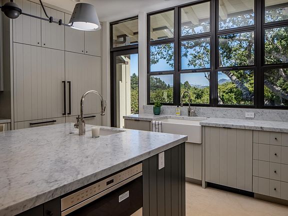 This sophisticated Quail Meadows modern farmhouse was extensively renovated in 2019 and hosts both valley and ocean views on 11 sunny acres. Offering ideal indoor/outdoor entertaining, the estate includes a 4 bed main house, 2 bed/bath caretaker's unit, artist studio, barn with equestrian facilities, and space for 7 cars. Superbly crafted, amenities include outdoor BBQ area with pizza oven, screened-in porch, radiant heat, Lutron lighting system, brand-new kitchen with Carrara marble counters, sauna and a separate well and water tank for landscaping.