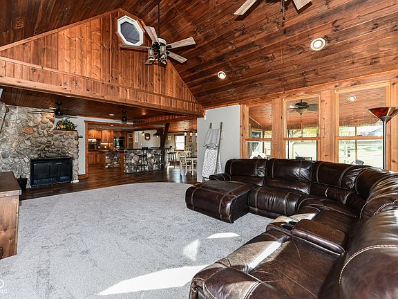 Welcome to this breathtaking farmhouse retreat, where comfort meets timeless style! Spanning over 4,000 sq. ft. on 3+ acres in the desirable Pendleton School District, this 2-story, 3-bedroom, 3-bath home invites you in with a charming wrap-around porch and is filled with thoughtful upgrades. Step inside to find brand-new flooring throughout most of the house, creating a fresh and inviting feel. The gourmet kitchen boasts newer appliances, custom concrete countertops, a large island, and a spacious walk-in pantry, seamlessly flowing into the open-concept dining and family room-perfect for gatherings around one of the two cozy fireplaces. The luxurious master suite is a true sanctuary, featuring rustic finishes, a massive walk-in closet with a laundry area, and a beautifully appointed ensuite bath with built in Bluetooth stereo. Recent upgrades include a brand-new furnace and AC, a state-of-the-art water filtration system, and a newly installed fence. Upstairs, an additional laundry room offers convenience for a busy lifestyle. At the back of the lot sits the 40x72 pole barn providing ample space for hobbies or storage with working plumbing and its own internet and HVAC this could also double as future barndominium. This stunning home offers the perfect blend of modern amenities and rustic charm-don't miss your chance to call it yours!