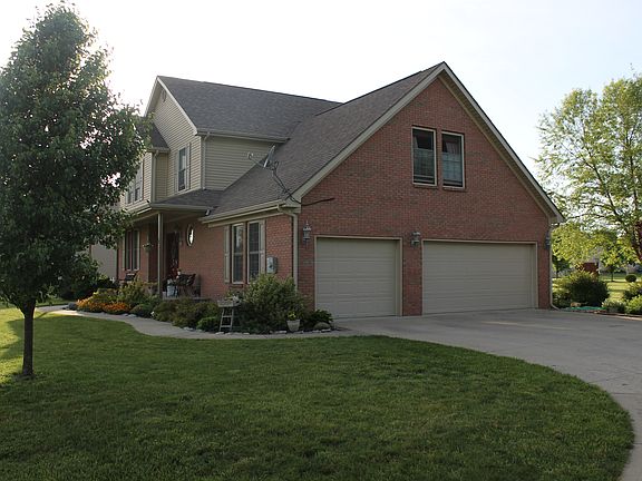 Welcome to 5494 Brush Creek Drive! Built in 2007, this one owner home has three bedrooms upstairs, all with walk in closets and garage space for 5 cars (3 car attached and 2 car detached with electricity). The detached is 20x20 and is a great space for toys. Brand new carpet was installed throughout the upstairs in March and hand-scraped true hardwoods are featured downstairs. The family room downstairs and office/dining room feature built in cabinets, or could be used as an extra bedroom. 9 foot ceilings downstairs are accented with crown molding. Custom cabinets in the kitchen are lit by under cabinet lighting and back splash. Ceramic tile is in the upstairs bathrooms and the master which features a jack and jill sink with large garden soaking tub. Laundry room is on the 2nd floor. There is a large bonus room upstairs great for a movie room or area for the kids. This lot, which is almost 1 acre is on a corner site. There are 13 acres of common ground across the street featuring woods, trails, and streams. Mature landscaping and several trees accent the lot. The front of the home has a large covered porch and a covered rear deck over looks the large backyard, which has a well for irrigation and garden. The main garage has been converted to a bar area with flat screen TV, but still easily holds a vehicle if needed. The house sits on a crawl and has been thoroughly insulated to save energy costs. *Extra carport, wooden play set, custom dining room table, appliances, and built in basketball goal may stay with the property if the buyer wishes. Schools are Rockcreek, Northside, and East. Call or text 812 350 3746 or 812 344 6310 for more info or a showing! Recent tax assessment was 258k.