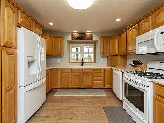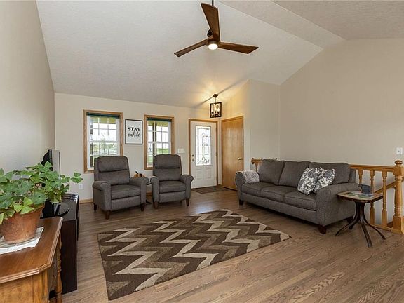 Beautiful ranch home with tons of pride of ownership! With over 3000 sq ft of living space, this home is situated on 2 acres and on pavement with a fantastic commute to anywhere in the metro. As you walk in, you will be greeted with a large open living room with vaulted ceilings and gorgeous hardwood floors throughout. You will enjoy the large kitchen for entertaining with the adjacent dining area and breakfast bar. Off of the kitchen is your mudroom/laundry area for your convenience. The main level also includes 3 bedrooms and 2 full baths. The lower level is fully finished w/ over 1400 sq ft w/ a family room and a rec room with FP. It also features a walk-out with patio area and an additional bedroom and bath. Tucked back off of the road, you will enjoy your country views from the partially covered deck off of kitchen. This home has been well taken care of and a home you do not want to miss! Call for your private showing today.