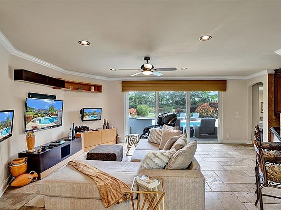 Excellent opportunity to experience luxury living in Woodfield Country Club. This 2-story home sits on an oversized private lot offering breathtaking landscaping and golf views. The kitchen is a delight, featuring stainless steel appliances, quartz countertops and custom inlaid backsplash. The master bedroom, located on the first floor, features spacious his and her custom closets and a sitting area overlooking the pool with lush landscaping. Elegant Jerusalem stone floors add charm to this unique home. Outdoors, enjoy the large brick paved patio, pool with spa and relax surrounded by colorful landscape. Impact windows and doors throughout adds security to this custom home. Make it yours!