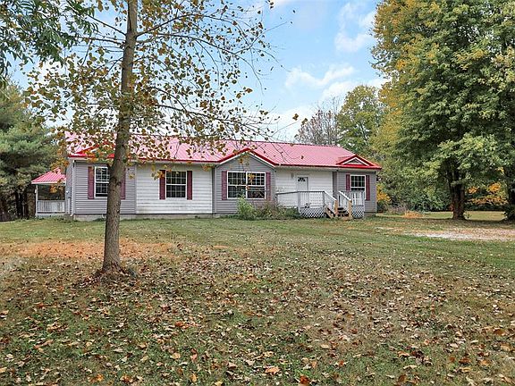 Great Opportunity for a little COUNTRY LIVING!! Home features huge great room and nice size kitchen with stainless appliances. All 3 Bedrooms have walk in closets. Home has GEO THERMAL HEATING AND COOLING and sits on 3 plus acres including pear and apple trees. There are multiple (8) out buildings on the property. Several are in usable condition and others are needing extensive rehab or removal. The outbuilding/shed nearest to home has heat and AC. Decks on front and rear of home and back deck features twp pergolas. METAL ROOF IS 2 YEARS OLD. Battery backup on sump pump. There is a disconnected Kinetico water system in basement that may be in working condition. Home is being sold as-is!