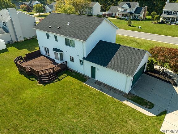 Welcome to Hartford Estates, a highly-desired neighborhood, & to this 4 bedroom/3 full bathroom Barden Homes Colonial. With over 2,200 sq ft of living space, this single-owner home is calling your name. Built in 1994, this home features a spacious kitchen w/ large island & opens to FR w/gas FP, formal DR & back hall w/ 1st floor laundry – all great for everyday living and/or entertaining. Hardwood floors in FR, LR & DR. Glass door opens to massive deck with built-in benches that overlooks a huge open-space backyard with shed for additional storage. Tastefully landscaped. Second floor features an enormous primary bedroom with vaulted ceiling, WIC & ensuite. 3 additional bedrooms w/ ample closet space & ceiling fans to enjoy seasonal fresh air – or choose central A/C for your comfort. Full finished basement adds to all this home offers with potential home office for privacy. Updates: complete tear off roof in 2017; tankless water heater installed in fall of 2018, furnace & air conditioner in 2019, new sewage pump in basement bathroom in 2023. Two-car attached garage & shed for additional storage options. SHOWINGS BEGIN IMMEDIATELY!