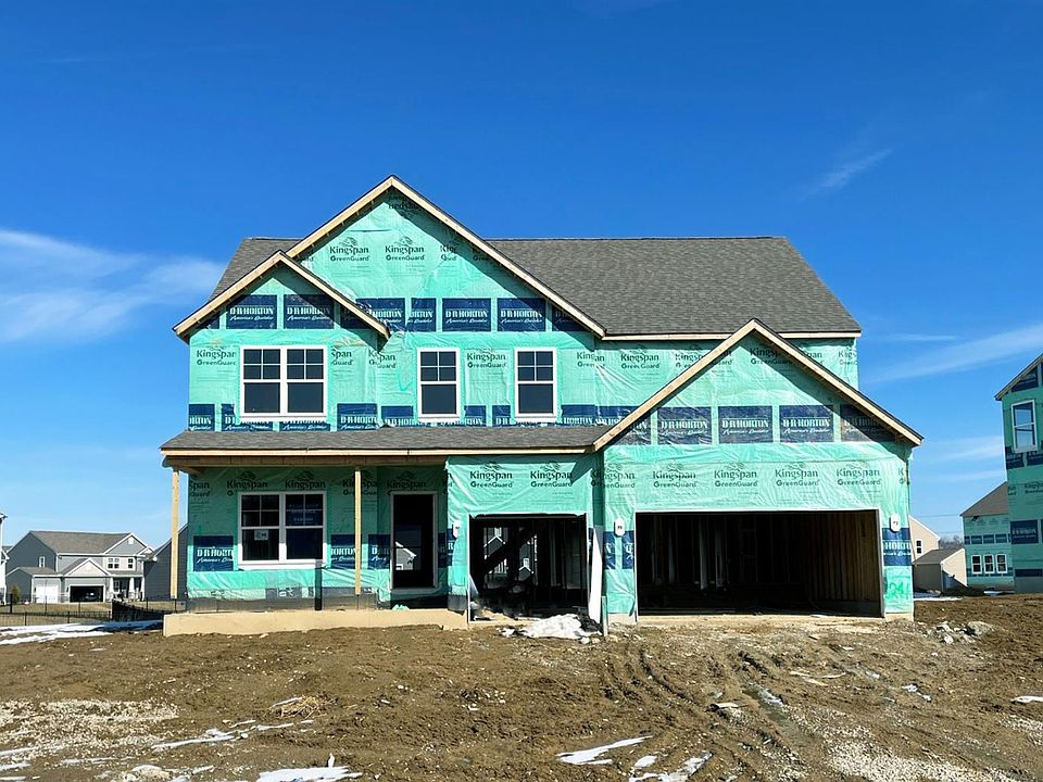 Popular Campton plan by D.R. Horton featuring open concept living, 5 bedrooms, and an office. Lots of walk in closets and huge pantry. Upgrades include full front porch, electric fireplace, quartz counters, stainless appliances, luxury laminate flooring, deluxe Roman shower in primary bath, oak railings with metal spindles, and smart home system. Home is on large lot that backs to greenspace in desirable Hopewell Valley neighborhood. Full unfinished basement w egress window and bath rough in.