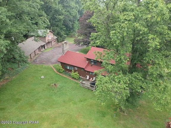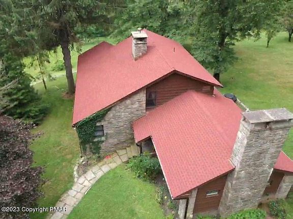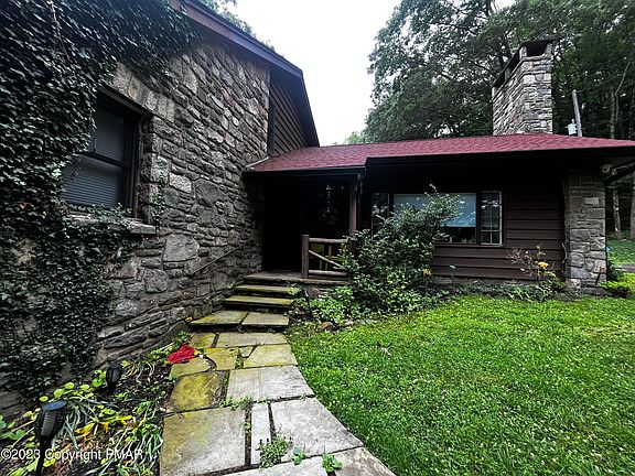 Welcome to this exquisite Adirondack-style home nestled on a sprawling 17.50-acre property, offering a perfect blend of tranquility, & natural beauty, This captivating property boasts a scenic trout stream & waterfalls. Inside you'll be greeted with 3 stunning stone fireplaces.The great room, has exposed beams, & Hardwood floors throughout the home. The sunroom & master bedroom are surrounded by nature & views of the Delaware Water Gap. Kitchen features granite countertops & modern appliances.Spacious layout & ample storage. Lower Level Game room, & walkout door to the Hot Tub.As you approach you'll immediately notice the seclusion & privacy it offers.The combination of privacy & amenities makes this property an ideal choice for a potential Airbnb, VRBO, or retreat destination. The home has been maintained, with a new roof and updated bathrooms, ensuring that you can move in and start enjoying this oasis immediately.