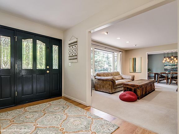 This incredibly charming four bedroom, four bathroom home sits on a large, private corner lot with a circle driveway, huge trees and small mountain views. The colorful, fragrant and lush landscape exhibits the timeless curb appeal of this unique and comfortable ranch home. Meticulously maintained and updated, this home has been owned by seller for over 20 years. The spacious and open floor plan offers a bright formal living room that opens to the formal dining room, a spacious study with two entry points and a large family room that features a gas fireplace, large windows and opens to the kitchen. Awesome, backyard with enormous covered patio and room for pool, fully fenced. Main floor master suite featuring a private deck, huge walk-in closet and a renovated 5-piece master bathroom with steam showed. Two additional bedrooms on the main level that share full bathroom. The main level also features a powder room and a laundry room/mud room combo with a door to the backyard. Finished basement with a large recreation room, guest bedroom with adjoining sitting area, bathroom and an abundant amount of storage space.