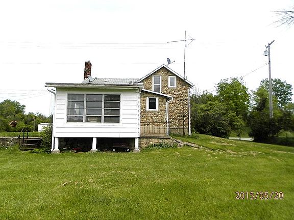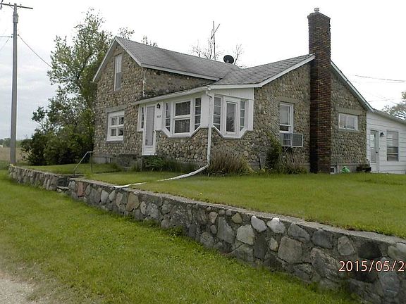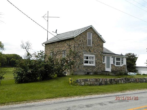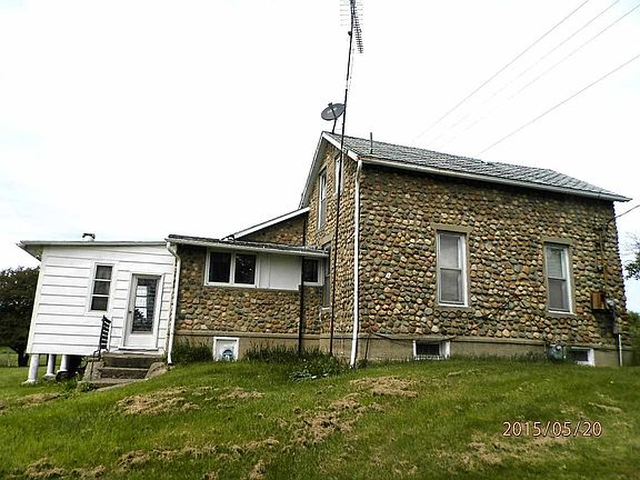1.5 story, stone exterior home with 2 bedrooms, 1.5 baths on 17.07 acres. Home features basement, 2 enclosed porches, 1 car detached garage, 2 outbuildings - 30x14 & 12x10, and a 31x24 barn. Appliances are included and some furniture is negotiable. Property has plum & apple trees, currant & gooseberry bushes. There is 9.9 acres of tillable ground, with balance of 7.17 acres that is homesite & wooded area. Well put in apx. 1999. Possession of house & barns 30 DOC. Possession of 9.9 acres+/- subject to removal of crops.