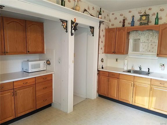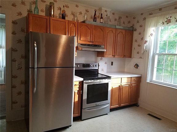 Historic Greek Revival 3 bedroom, 1.5 bath home with old-time charm, natural woodwork, high ceilings and plank flooring throughout. Formal dining room for entertaining, cozy nights by the livingroom fireplace and enjoy alone time in family room. Newer stainless steel refrigerator and stove installed 5/17/18. All on 5.18 acres, running stream with a bridge to the other side of the property. Old Storefront with endless possibilities. Conveniently close to Ontario Lake, Shopping, and SUNY Oswego. Sellers having house and store painted.