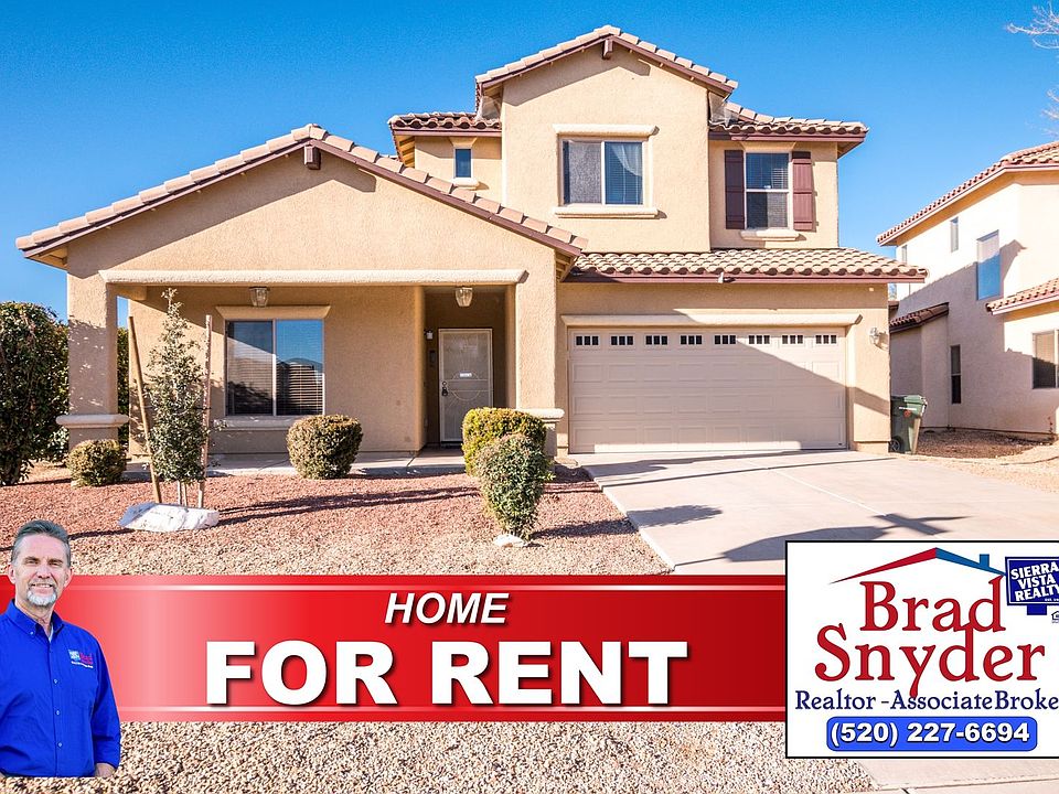 Spacious 4-Bedroom Corner Lot Home with Solar. This charming 4-bedroom, 2.5-bathroom home is perfectly situated on a corner lot and equipped with a solar system for energy efficiency. Featuring a 2 Car Garage and Central A/C, this property combines functionality and modern comfort. Step inside to find a large living room and a welcoming dining area, perfect for entertaining or family gatherings. The open kitchen boasts an oversized island, a breakfast nook, and upgraded appliances, offering the ideal space for cooking and casual dining. The spacious primary bedroom includes a walk-in closet and access to a private deck, creating a peaceful retreat. The primary bathroom is complete with dual sinks, a garden tub, and a separate shower. Additional highlights include a large laundry room for added convenience. Outside, enjoy a fenced yard with a covered patio, perfect for relaxing or hosting outdoor activities. Located in the sought-after Chaparral Village North subdivision, one of Sierra Vista's newer neighborhoods, this home is just minutes from Fort Huachuca, shopping, and restaurants. A One-Year Lease is Required. The tenant pays all utilities. *Rent does not include a $30.00 sewer & trash charge. Directions: Avenida del Sol to EAST on Calle Granada, Left on San Simeon, Right on Cortez, Right on Tularosa, Left on to Waco Drive. House is at the end of the street on the right Corner.