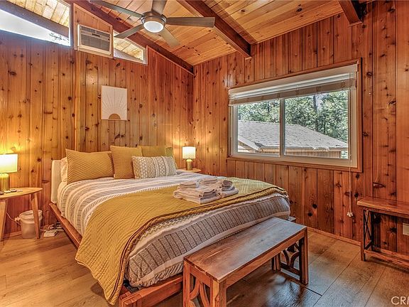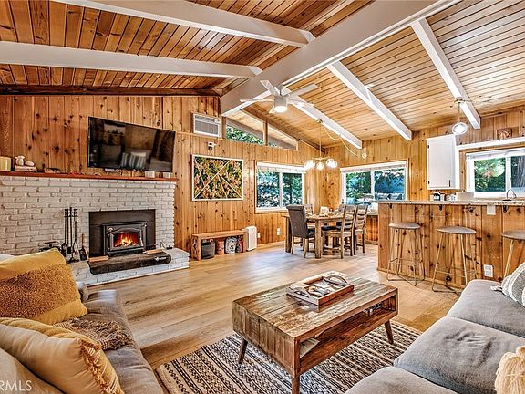 As you step inside, you'll be greeted by a warm and updated mid-century ambiance. The vaulted ceilings add a touch of elegance, while the newer Kuma wood-burning fireplace insert creates a cozy atmosphere during colder months. The kitchen features sleek granite counters, newer appliances, refurbished cabinets, and a convenient breakfast bar. This home is not only aesthetically pleasing but also energy efficient. The dual-pane windows help to keep the interior comfortable while reducing energy costs. The knotty pine walls and ceilings add a rustic charm, complemented by stylish and modern light fixtures. The newer luxury vinyl flooring throughout adds durability and a contemporary touch. Both bedrooms are thoughtfully designed, with unique angled windows placed high to maximize natural light and create visual interest. Every room is adorned with high ceilings, including the spacious full bath with its updated dual vanity. The fully fenced backyard provides a safe and spacious area for pets or kids to play and explore. The rear deck is the perfect spot for outdoor dining and bird watching, allowing you to connect with nature right from your own home. This property offers a versatile storage shed/workshop that could easily be converted into an office space or art studio. With its prime location, you'll have the convenience of walking to town for fine dining experiences or embarking on epic hiking adventures along the famous Ernie Maxwell Trail, leading to the high country.