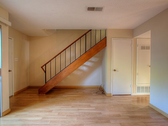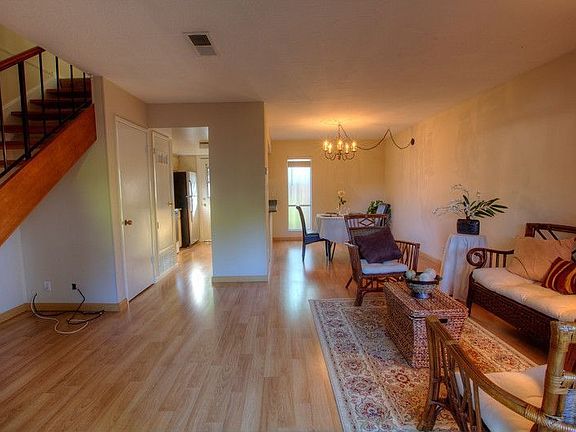 2 Bedroom, 1 Bath townhouse with 925 square feet in a two-story floor plan. Newer paint, carpet, vinyl gives the home a fresh look. Light laminate flooring and neutral paint make for easy decorating. Nice sized kitchen with dining area adjacent. Living room with access to back patio with space for your plants or summer barbequing. Laundry facility a few steps from back patio. Near greenbelt. Walk to shopping center, parks and transportation. Community pool and clubhouse.