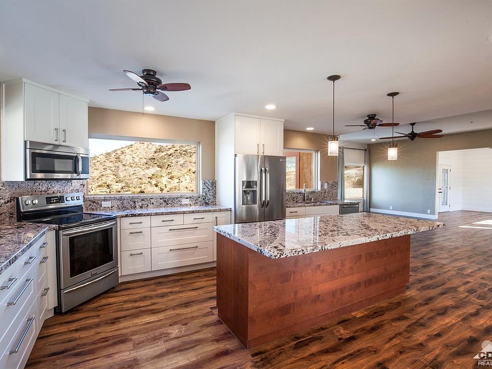 Welcome an incredibly secluded part of Yucca Valley, where on this property you receive a bird's-eye view of the Morongo Basin! Moments to the Joshua Tree National Park or a hop-skip-and-a-drive to Palm Springs. Own 3 contiguous parcels totalling 15 acres, that INCLUDES part of a MOUNTAIN! Close to 2450 sf of remodeled home from top to bottom, this 2 story home will not disappoint. 2 bed and 3 bath with an office that can be used as a 3rd bedroom. Well for water source with a very efficient pump. This property boasts incredibly raw terrain to explore off roading or hiking, where you can find all kinds of desert wild-life from coyotes, quail, jack-rabbits, bob cats, mountain goats, and more. New floors (premium waterproof vinyl & carpet) baseboards, doors, door jams, cabinets (kitchen, bathroom & laundry room), granite counters (kitchen, bathroom & laundry), stainless appliances, windows, paint, roof, shiplap, bathrooms, kitchen, lighting, AC zoned, booster pump AND SO MUCH MORE.