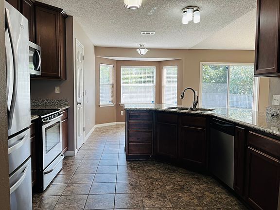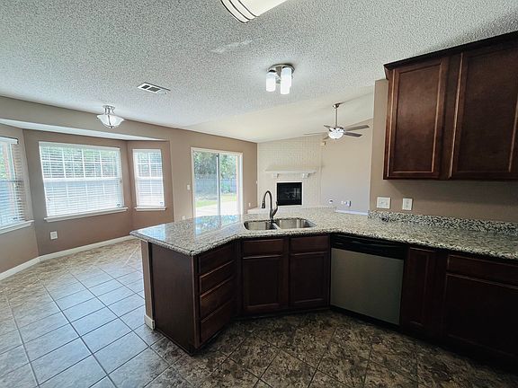 Come see this well maintained 4/3 nestled on a cul-de-sac in the Estates at Emerald Shores sub-division. This home features a large kitchen, breakfast bar, Eat-in Kitchen, a pantry, and plenty of cabinet space. The large great room has a fireplace and sliding doors leading out to an open patio. There is also a formal dining room. The primary suite features a large bedroom & bath, with double vanities, a garden tub, separate shower, and dual walk-in closets. Back bedroom has its own full bath. Very large backyard with Fire pit, shed (AS IS) and privacy fencing. Great Location, very close to the back gate of NAS Pensacola, area shopping, beaches, and more.