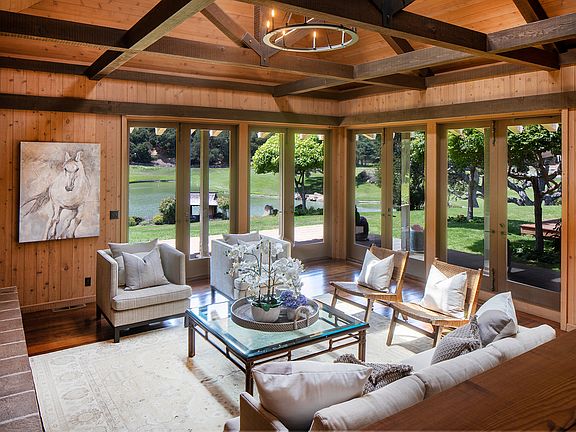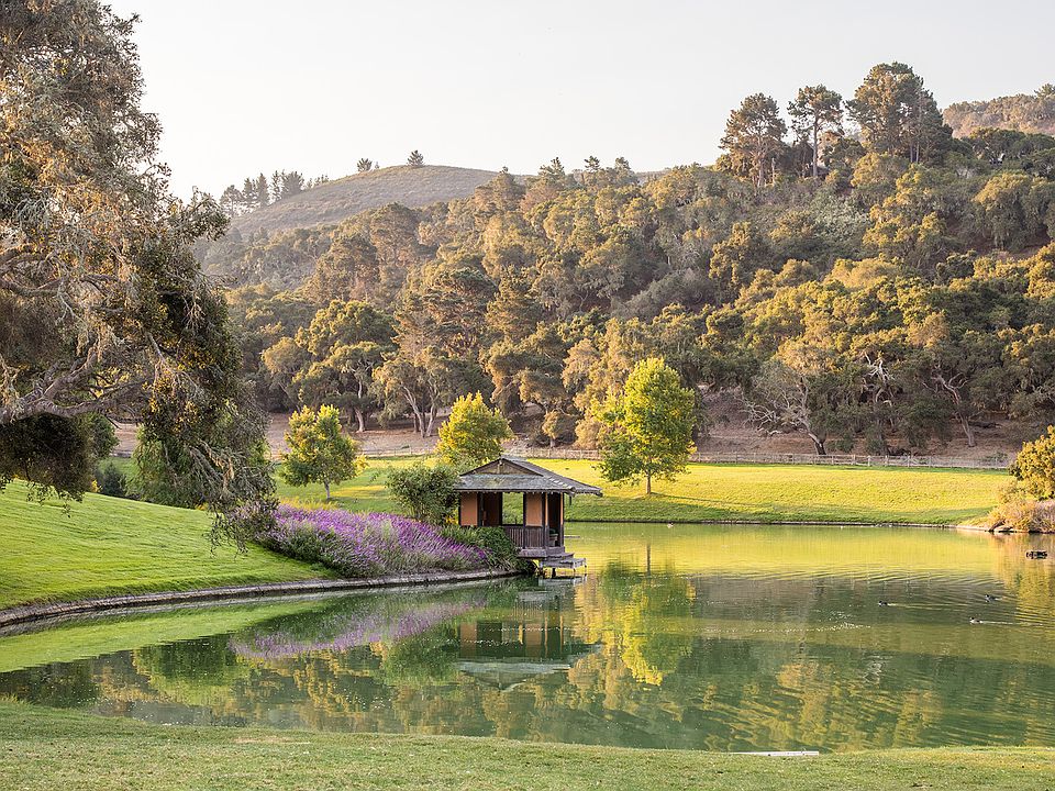 Never available for lease, until now! Rare lakefront estate on six level acres in the coveted, gated enclave of Quail Meadows, just 3-miles from Carmel-by-the-Sea & steps to Quail Golf Club. Handpicked by Quail developer Ed Haber for his own private sanctuary, this property is simply unequaled in Carmel Valley! Designed to ensure that tranquility, nature & beauty are forever preserved, this oasis boasts three residences with commanding lake & mountain views. The plush grounds feature pastures, pool, fifty-five tree orchard & verdant gardens that take your breath away. Timeless Mid-Century Modern influences can be seen throughout the 7,491 sf estate including a 4,924 sf single-level Main House with three master suites, architecturally dramatic ceilings, walls of glass & ample entertaining areas. Two private guest houses, 2bd/2ba & 2bd/1ba, are perfect for family & friends. The good life begins at the gate of the Quail Meadows community, where residents of 56 estates on 600 stunning acres live a Classic California lifestyle. Utilities are included with the monthly rent. Unfurnished. Pets considered on a case-by-case basis. Call Carmel Realty Company to schedule a viewing. Utilities included with rent.