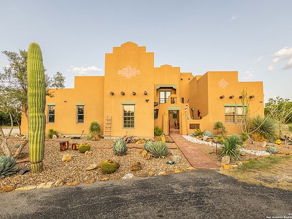 Welcome to a luxurious southwest 2 story with picturesque views of native cacti, soaring roof lines - offering a truly unique home in the heart of South Texas! Stepping inside brings the warmth of latias, and wood vigas that reflect the unique adobe living and architecture of homes in Santa Fe, NM. So many special and well thought accents throughout make this home one of a kind! A new roof - July 2025 A new water well to be drilled September 2025 Updated kitchen and modern appliances with new dishwasher August 2025 Secluded office with 1/2 bath has new carpet and paint July 2025 The location (7 minutes from Walmart) along with a high fence, electric entrance gate, paved entrance and custom landscaping make this home move in ready! PRICED TO SELL!