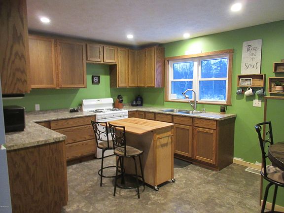 Love Love Love how beautiful the inside of this home is and all on 6 Acres +/- with approximately 4 wooded acres. The home has an open concept and 3 Bedrooms. The Full Basement with daylight windows, so you have room to expand if you want to. Items Remaining in home are the Refrigerator, Range, Washer, Dryer, Chest Freezer in Basement, Gas Wood Stove, & play equipment. There are Apple, Cherry, & Peach trees & a nice garden area to enjoy. Water on property sports Bluegill, Bass and turtles. Thedeer have even left their hoof prints in the land. This unique home and property is waiting for the perfect new owners to take in the country splendor and the amazing peace and quiet. Hunting, fishing, snowmobiling, 4 wheeling, and a great walk in the woods:) McBride is a county maintained road.