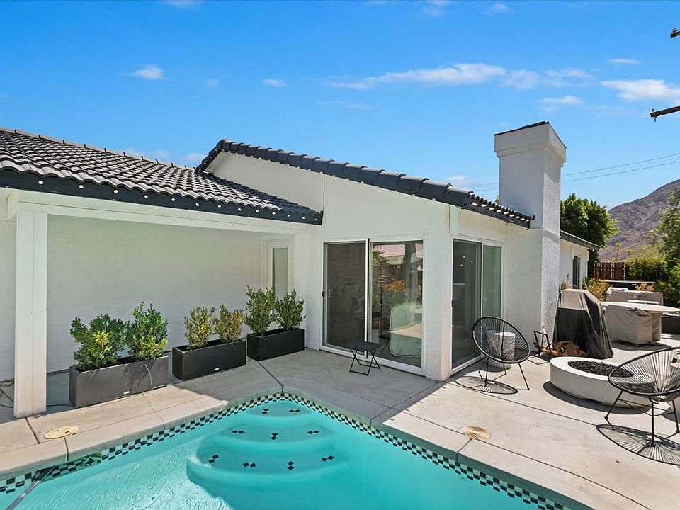 Set on a prime corner lot in La Quinta Cove, this stylish home offers sweeping mountain views and direct access to nearby hiking trails. Inside, the open layout features a bright living room with fireplace, a modern kitchen with a large island, and a dining area perfect for entertaining. The primary suite includes outdoor access, a cozy sitting area, and a spa-inspired ensuite with dual vanities and a walk-in shower. Enjoy multiple outdoor patios, including a covered space ideal for relaxing or dining al fresco. Newer A/C and heating add year-round comfort.