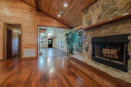 This home is situated on 6 acres. Over 3200 sqft of living space, high ceilings,cedar walls, walk in closets and 2 master suites. Ceramic tile and hardwood through out,custom wood burning fireplace,large covered porch to enjoy the view and soak in the sweet tranquility of the country setting!