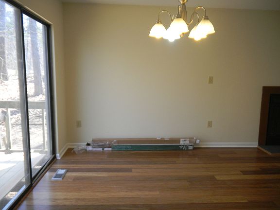 Newly updated townhouse with bamboo floors in the living room area that opens to a large back deck on a wooded lot. Bright kitchen, half bath, dining room and office/den also on the main floor. 2 large bedrooms with double closets and completely updated full bath upstairs. Washer/dryer included. Harris Teeter within a mile and park 'n ride 2 miles away. Small dogs or cats allowed. (This property is just over the Chatham County line; not in Carrboro)