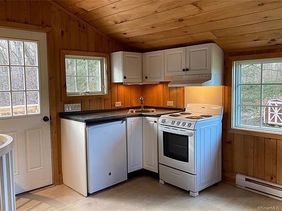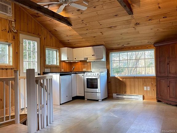 Completely charming one bedroom apartment in a fabulous location. So convenient to everything...Walk to restaurants, shops, schools, beach, houses of worship and the train AND to the new and upcoming amenities at Darien Commons! Open kitchen, dining and living room on 2nd floor. Spiral staircase leads you to the laundry, den/office and bedroom with walk-in closet. Loads of windows with vistas of the lovely property throughout, cathedral ceiling on 2nd floor. Apartment is very private and attached to the detached garage of the main house (which is currently rented). Assigned parking space in driveway. Includes both a deck and private quaint back yard with sounds of the stream right out your backdoor. Square footage is per landlord.