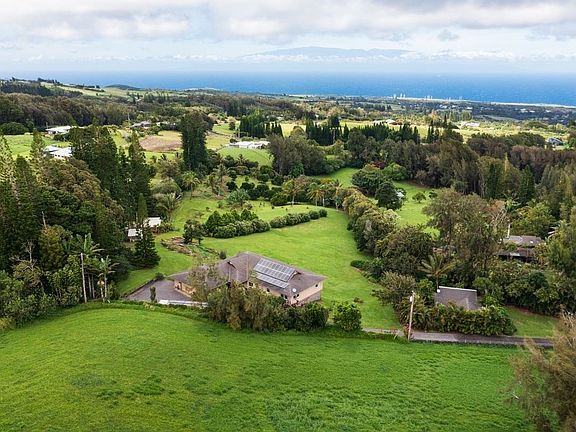 A remarkable country retreat in North Kohala with magnificent views of Haleakala and the Hana coast of Maui. The 4.5 acre property features a 2 bedroom 2 bathroom farmhouse of the highest quality of build. The main house is complete with a 2 car garage, wrap around covered lanais on leeward side of home, and a laundry room/walk in pantry. Unique qualities of the home include vaulted ceilings, hand scraped hardwood floors, a built in mango island, and large windows that soak in the view of the farm , the ocean, and the sky. Also included are a whole house dehumidifier system, central air and heat, and double hung Andersen windows that offer natural ventilation when the trade winds blow. The farm features a mature fruit orchard, multiple avocado trees, mac nuts, a garden, and a variety of Hawaiian plants. Gather from your own yard and then bring it back to the well appointed elegant kitchen to make farm to table meals from scratch. The house has solar panels and sustainability is the way of life here. The partially finished basement allows for easy storage of farm equipment. The detached ohana house can be used for family, guests, or as a rental unit, where the property can be enjoyed from the private, covered lanai. Fenced and gated with two ag sheds as well, this private wonderland is ready to enjoy. It is only minutes from downtown Hawi and yet a world away. The country feel of Kohala is on full display with the convenience of paved roads, County water, and nearby stores and restaurants in Hawi and Kapaau. Beaches and hikes are close for the full island experience. Waimea is a mere 30 minutes away on the mountain road, one of the most breathtaking drives on the Big Island. This unique find of a property exemplifies country life at its fullest.
