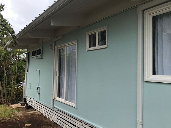 Located on desirable Laie point... Stunning ocean views of Goat Island, and Huikilau beach and bay, with beautiful new highly durable metal chocolate brown roof with high efficiency new solar panels and three 2nd generation Tesla batteries... split unit AC-dehumidifiers and ceiling fans in every room. Fresh coat of paint inside and out. Close enough to the water to enjoy the view and ocean sounds but set back enough to avoid the direct corrosive ocean spray.