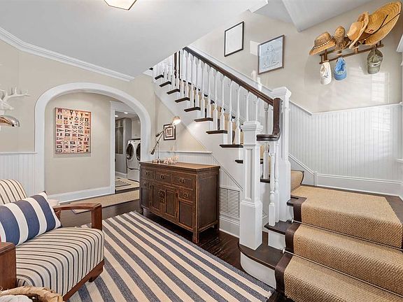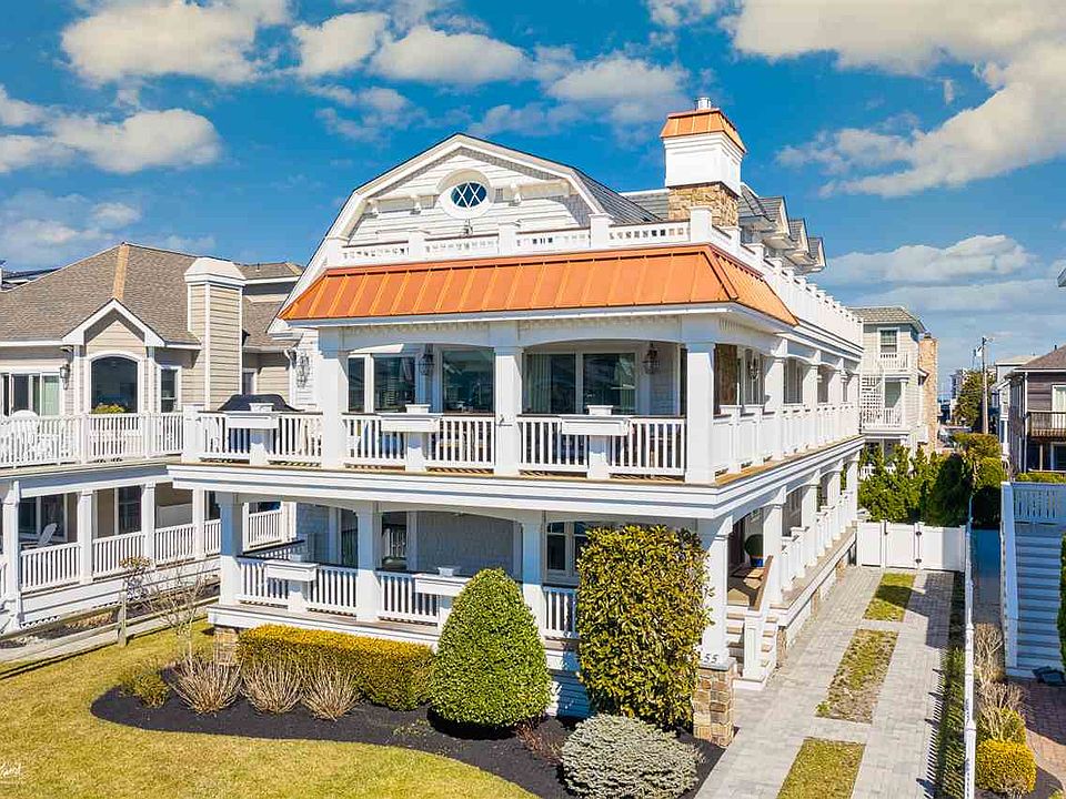 Offering Tonnta Mara (Sea Waves), completed in 2011 by Donald Zacker (Architect) and DL Miner (Builder). This is a top-of-the-line, state- of-the-art gem just five homes from the beach with ocean views on two decks unobstructed by any utility poles on the block. The professionally designed, decorated and furnished three-story masterpiece features the finest finishes, craftsmanship and electronics, including a 27 panel solar array on the composite slate roof with at-the-market sales to the electricity grid (providing a monthly check to the homeowner). Ralph Lauren Joshua Tree furnishings, drapes, and wallpaper adorn the bespoke interior. The third floor master bath and bedroom features a large Carrera marble shower with oversized Kohler rainhead and body sprays, heated towel rack and separate designer soaking tub alongside his and her Kohler sinks. All of the counters in the home are double- thick marble or granite; all of the doors are solid mahogany; and all of the floors are hardwood. The master suite also features a walk-in closet with a second full-sized washer/dryer set and a separate private office with mini-fridge. Third floor sliders open to a wrap-around Ipe (Brazilian Walnut) deck with panoramic views, lounging areas, and a spiral staircase to the second floor deck. The second floor boasts a Chef's Kitchen with Wolf range and microwave, warming drawer, Bosch dishwasher, Sub-Zero glass-front refrigerator and separate ice machine. The granite breakfast counter looks out to a living and dining area with vaulted ceilings, oversized windows, a large stone gas fireplace and breathtaking ocean views. Wall-to-wall sliders open to a large wrap-around Ipe deck with dedicated outdoor gas grill and Royal Teak dining and lounging furniture. Two bedrooms-one en-suite and one next to the handsome full marble bath (both with custom vanities and mini-fridges)-finish the second floor. Three additional bedrooms and two full baths anchor the first floor. Two front bedrooms share a gorgeous bath with solid wood pocket door and a custom vanity. Sliders also open to a private front deck. Down the hall is a laundry/utility room with side entrance followed by another full bath with combination soaking tub and shower across from the third bedroom. A comfortable rear family room features another gas fireplace, granite wet bar, Bosch dishwasher, mini-fridge, TV and electronics closet. Sliders open to another Ipe deck and Ipe patio that wraps around the heated pool, complemented on one side by a stone waterfall. A cabana features an outdoor wet bar with ice maker, ice cream freezer, poolside television and separate storage for the solar panel system and beach gear. A finely-crafted outdoor shower is along one side of the home while a four car driveway abuts the other side. Sold partially furnished. Appointment required. 2022-03-01