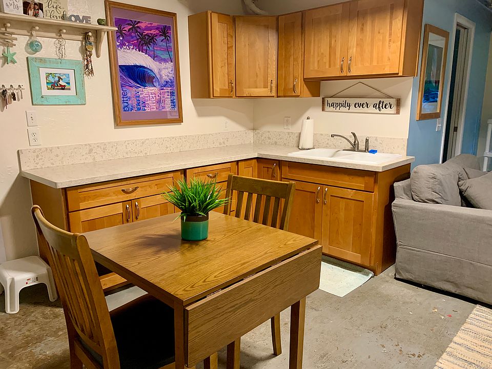 - Exterior features: Utilities included in rent, surfboard storage above the desk