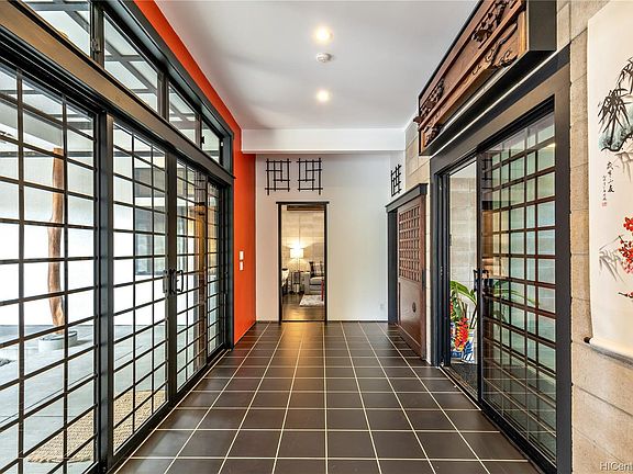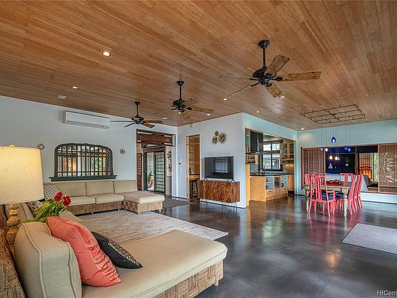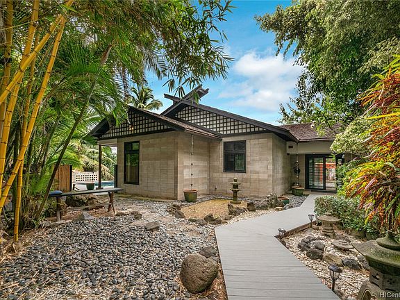 Situated on lush coastline, this elegant & private 4 bed 3 bath home awaits. Relish endless views of sparkling blue Laie Bay & green mountaintops. Coconut palms & trickling water surrounding the pool deck, make this the perfect place to entertain & relax. This home is secured behind a motorized gate & rockwall-lined driveway. Double doors of the entryway reveal a zen-like garden & peaceful courtyard with torii gate as the centerpiece of zen. Sophistication is clearly exhibited in the design with concrete flooring, bright walls & bamboo ceiling. Bathrooms have unique spa-like features including a furo tub, steam shower & whirlpool tub. Copper sink, custom cabinets, island cooktop & ocean views make this the perfect kitchen for entertaining. Tea room next to kitchen serves as 4th bedroom. Detached studio could be the perfect home office or additional sleeping area. Extreme precision & superb geometric lines inspire the design of this Laie home. Tax record does not reflect bedroom count.