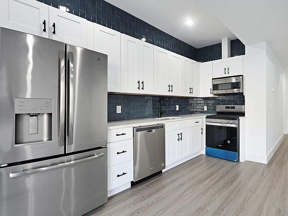 Offering rent incentives, Call now to inquire. Fab gut-reno two Bed-One bath apartment with private outdoor space. This unit is an example of quality living on an affordable budget. Avail asap. Pets are limited to 1 cat. Enjoy an open concept layout, with oversized windows that flood the ample living and kitchen space with natural light. This beautiful home has amazing features that include high ceilings, recessed lighting, central Air and Heat, luxury vinyl floors, quartz countertops, custom cabinets, tile backsplash, and stainless steel appliances like your full size double-door refrigerator and washer and dryer. Retreat to your private backyard and unwind after a long day of work. The bathroom showcases detailed work with half-tiled walls, custom vanity, standing shower with sliding glass doors, and brushed nickel finishes. The bedroom fits a California King Bed, a Custom Walking closet, and bright light streams through the windows, plus a nook area for an office. Your future home is located in a sweet spot in JC Heights and the building offers excellent curb appeal, plus an inviting semi-private entrance with exposed brick and original stairwell banister, which makes you feel like living in a private house. There are several options for an easy commute to NYC, so no other unit can compete with this apartment. Take the 119 Bus to Port Authority right at your doorstep, or the 86 to Downtown around the corner. Easy 5 min stroll to take the 9th St Hudson Light Rail to DT Jersey City or Hoboken, and CityBike station one block away. Get to know the diverse artistic community in the area, hang out at Washington Park or Riverview-Fisk park for the farmers market, step into the bustling Palisades Ave or stroll back to Central Ave and enjoy the local shops, vibrant community, and all that Jersey City Heights has to offer. Sqft is approximate.