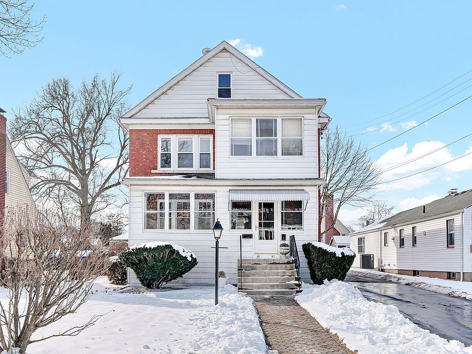 HIGHEST & BEST BY MONDAY AT NOON. This well-maintained two-family home has been in the same family for over 40 years and is now ready for its next chapter! A paver walkway leads to the newly updated front stoop and a spacious enclosed porch (21' x 8'), providing two separate front entrances for unit #55 and unit #57. Each unit has a 5-room layout, featuring a welcoming front hallway with a large closet, a seamless flow from the living room to the dining room and eat-in kitchen, and two generously sized bedrooms with a centrally located full bathroom. Designed with high ceilings, large windows, solid wood doors, and mostly hardwood flooring, the home is filled with warmth and character. The layouts mirror each other on both floors, except kitchen is a bit different. Each unit enjoys a private enclosed porch (10' x 8'), overlooking the backyard. Additional highlights include an unfinished walk-up attic, perfect for extra storage, and an unfinished basement, offering even more space. A detached two-car garage and a newly paved asphalt driveway provide ample off-street parking. The property has separate laundry space, separate utilities for heat and electricity, including two CNG gas meters, two water heaters, and two electrical panels. Located in a neighborhood among single and multi-family homes, and is conveniently located near schools, library, shopping, and major highways. Whether you're looking for an investment opportunity or a chance to live in one unit while generating rental income from the other, this charming two-family home is a rare find! Ease and efficiency for multi-unit living. See floor plan with room dimensions attached to listing. Unit #55 kitchen 12'11"x11'4", Unit #57 kitchen 12'9"x11'7", laundry hook-ups off kitchen (washing machine only).