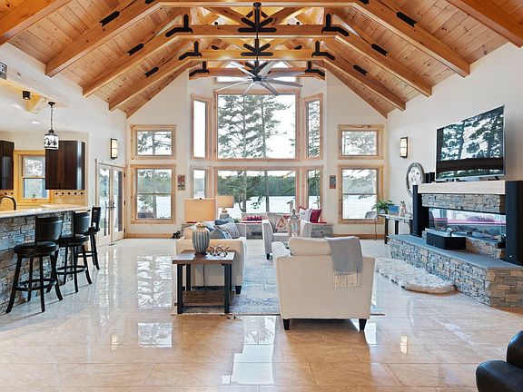 Rarely can you find a combination waterfront/equestrian luxury estate. A place for the good life on water and on horseback. The waterfront portion of the property is perfectly suited to take advantage of lake life with level grounds wrapped with beautiful retaining walls. Natural buffers adorn the 233 feet of shore front. A gently sloped manicured lawn leads to an aluminum docking system in the water, perfect for docking boats or Jet skis. A 1200 square foot deck off the main living area of the house equipped with timber canopies and stone fireplace is there for you to enjoy your south westerly views. Sunrise Lake is a beautiful 247-acre Lake in the heart of the Lakes Region of New Hampshire. Most of the time it feels like you have the place to yourself with the peace and serenity of the wildlife. If you crave the social experience there is a tight knit community of friendly neighbors and fellow boaters. Paddle board or jet ski to an island and cast for bass off its shore. Watch and listen to the majestic call of the family of Loons that return and have new babies every year. Behold the Bald Eagles that soar about the Lake and often perch in the towering pines along your shorefront. Take a swim in the cool clear lake waters, perfect for a quiet paddle board or kayak. Directly across the private road is your 16-acre equestrian complex that has many uses. This portion of the property includes a gorgeous multi-use barn equipped for horses, toys, plenty of storage.