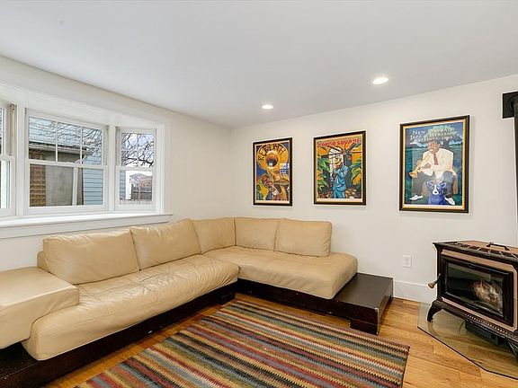Enjoy unique privacy & tranquility in this gorgeous freestanding Cambridge home tucked just off the main street. This timelessly beautiful home features gleaming hardwood floors throughout, sleek gourmet modern kitchen with SS appliances, a charming beamed ceiling & a glass-paneled door leading to the private patio. A convenient half bath just off of it. Upstairs features soaring vaulted ceilings in both bedrooms, a walk-in closet in the master, a full bath & favorable 2nd-floor laundry. In the winter curl up with a book next to a roaring fire in the elegant glass-front pellet stove, capable of heating entire house offering an environmentally friendly & low-cost alternative heat source. In the spring & summer enjoy space enough to have a small garden & meals outside on your private patio. Home also features great storage/workout space in the private, unfinished basement. Enjoy significant energy savings & minimize carbon footprint with private solar panels powering nearly entire house.