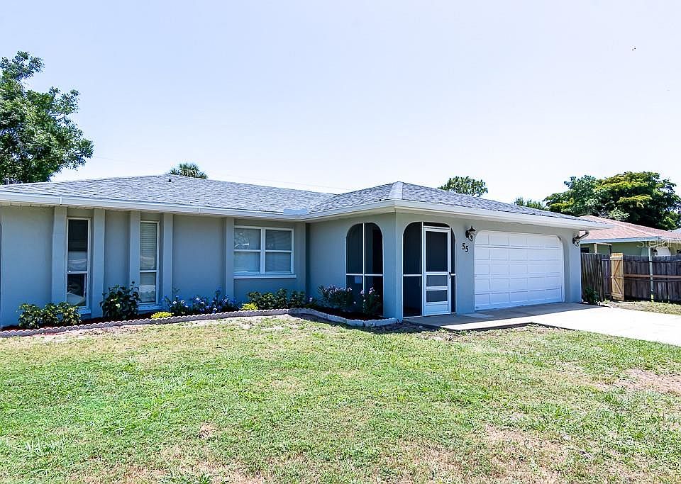 Virtual Tour this beautifully updated 2bed/2bath/2car garage block home in South Venice. This home has new vinyl plank flooring, fresh paint inside & out, baseboards, ceiling fans and light fixtures throughout. The open split floorplan puts the bedrooms on each end of the house with a new kitchen in the middle. The kitchen has new shaker cabinets, backsplash, granite counters, stainless steel appliance package, and under-mounted sink with disposal. A kitchen bar goes through to the back sunroom of the house. The master bedroom is large with its own full bath offering dual sink with granite, tub and shower, and a walk-in closet. The second bedroom also has a small walk-in closet and sits next to the guest bathroom with new vanity and walk-in shower with new tile surround. The 2 car garage has laundry hookups and a freshly painted floor. The house has a brand new Roof completed May 2020, Warrantied foundation piers, 2010 HVAC, Well & Septic. The yard is fenced and offers a nice size shed onsite with deck extended off the patio. Hurry in to see this south Venice home.