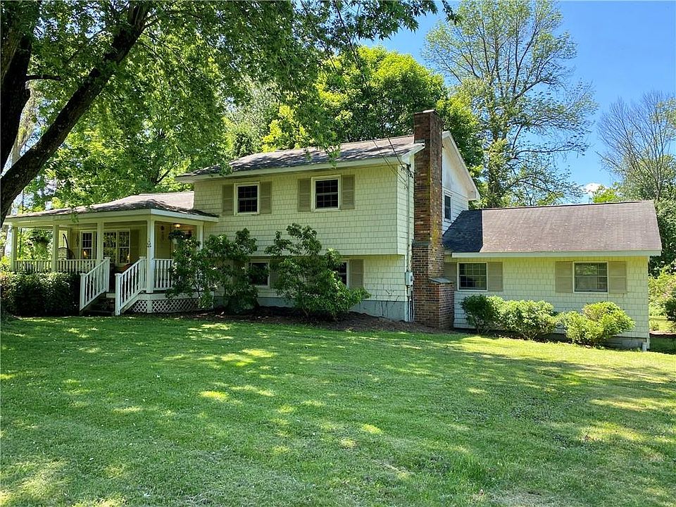 A private 3.05 acre oasis on Quaker Hill welcomes you, only minutes from the quaint village of Pawling with shops, pubs, fine dining & the train! A beautiful parklike setting w/a huge back yard, heated salt water in ground pool & a cedar cabana. Covered front & back porch overlooking gardens & patio with stunning, old shade trees throughout the property. Perennial gardens, raised bed fenced vegetable garden, a shed & the best of all, a beautiful Hobbit House w/endless possibilities i.e. artist studio, she-shed, a play house or a wine cellar. Inside this spacious home, 3 BR's which include a large primary suite w/full bathroom, jacuzzi & wic. Great mother/daughter potential as well. There are 2 offices, family rm. w/Rumsford fplc., updated kitchen & 2 separate attic storage spaces. There is a 2 car attached garage & a mud room. 2 new picture windows & new oil tank have been added. This peaceful, idyllic setting is only 70 miles from NYC, the best, tranquil retreat! Additional Information: Amenities:Stall Shower,Storage,HeatingFuel:Oil Above Ground,ParkingFeatures:2 Car Attached,