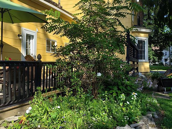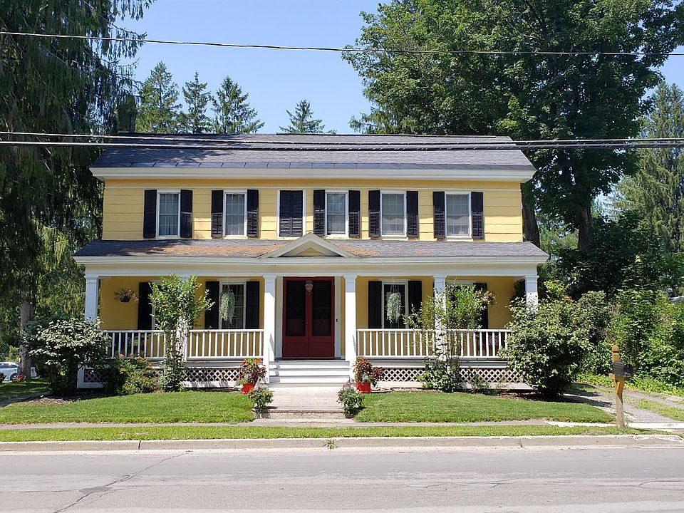 Beautiful, spacious Cherry Valley village home. The full width front porch and double door entry with stained glass accents welcome you into this warm and inviting residence. The first floor boasts a formal living room with crown molding, charming family room with a gas fireplace, study with floor to ceiling lighted glass bookcases, dining room graced by a lovely bay window and chair rail trim, half bath, and bright laundry/mud room adjacent to the large back yard, side deck and patio. Wonderful cook's kitchen with a large butcher block island and prep sink, wine cooler, walk-in pantry, maple cabinets, 5 burner gas cook top, double wall ovens and all the extras. The second floor has 4 large bedrooms, 2 full baths, and plentiful closet space. The private master suite has skylights, a huge walk in closet, double vanity bath with cherry cabinetry, and a large shower. Original hardwood floors throughout. An original Kitty Johnson mural adds to the charm. Welcome home!