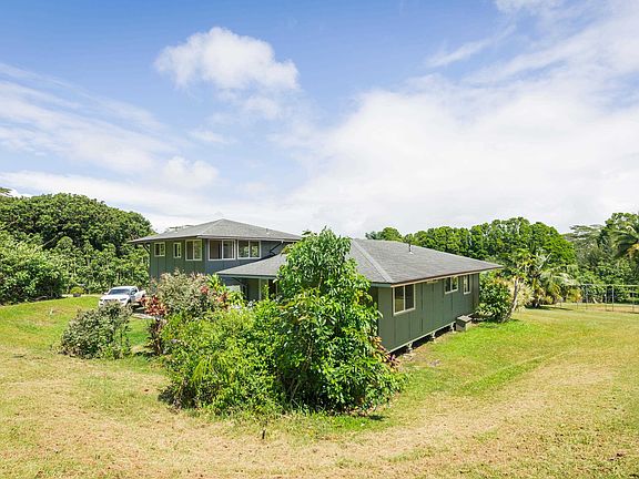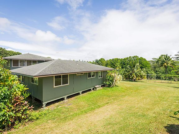 This property is a well-maintained Haiku family farm compound with a 3 bedroom main house including private 2nd level quarters. The 1872 sf garage/barn has 2 useful, 288 sf+ private quarters to each side of the barn. There is also a multi-purpose BX farm structure, 280 sf. This property is one of only 8 large residential properties on an elegant cul-de-sac accessed near Hana Hwy at the legendary Pe'ahi (Jaws) intersection. The mauka boundary is shared with a 50 acre private forest. The mature orchards include multiple varietals of orange trees with seasonal, marketable fruit yields, 150-200 lbs/week. The jumbo lilikoi trellis was constructed to propagate and easily harvest marketable yields. There are also producing apple bananas, lychee, avocado, papaya, soursop, sapodilla, Tahitian pomplemousse and coconuts.The seclusion, quiet and privacy of this location is rare in bustling Haiku yet it is not off-grid! County water, septic system and underground utilities make this an exceptional homestead. Close to beaches, shops, grocery stores and restaurants including world-famous Mama's Fish House at only a 12-minute drive to the charming beach town of Pa'ia.