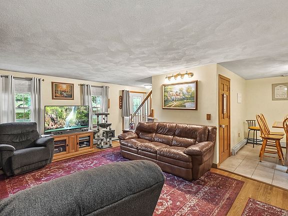 Located in North Attleboro, MA, this charming 4-bedroom, 2.5-bath home has central air conditioning and offers a perfect blend of space and comfort. Upon entering the first floor, you’re greeted by a tiled entryway, carpeted stairs, and a convenient coat closet. The dining room features chair rails and French doors that open into a 3-seasons room with beadboard walls and access to a 2-tier deck. The kitchen includes tile floors, an island, and stainless-steel appliances, with access to the basement. The living room offers a cozy wood fireplace, while the half bath on this level comes with a washer and dryer. Upstairs, all four bedrooms feature wall-to-wall carpeting and ceiling fans. The main bedroom has an en-suite bathroom with tiled floors. Second floor also has an additional bathroom. The full basement includes two TV rooms, offering additional living space. Outside, the home features a 2-car garage, parking for 6 cars, and a fire pit.