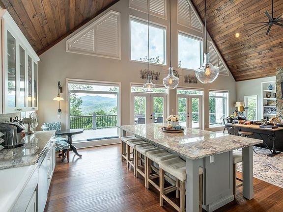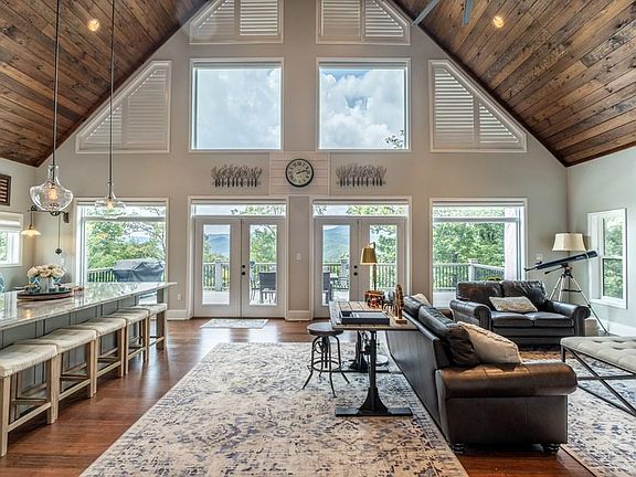 HIGH END FURNISHED home with LONG RANGE VIEWS! This home's features are unmatched both inside and out. Low Maintenance Exterior and an inviting interior. Great Room with wood ceiling, floor, stone fireplace, and a wall of windows. French doors lead to your deck and MAGNIFICENT VIEWS! A bright kitchen with SS and beautiful granite countertops matching an oversized island. Down the hall is a half bath, laundry room, and Main Level Master Ensuite including a tile shower, tub, and 2x vanity. Upstairs is your loft area, guest bath, and 2 guest bedrooms. Downstairs is your entertaining area with a large Rec Room/kitchenette, bath, 2 Bonus rooms, and the hot tub! This home has it ALL and MORE!