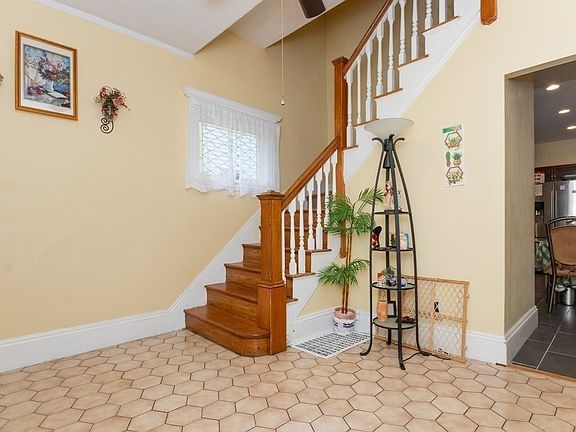 Welcome to Everett! Walk in to an enclosed porch you can choose to use as more living space in an already spacious home or as a large mudroom. The open foyer allows you to view the broad stairwell to the second floor and beautiful hardwood floors on the main floor, the perfect welcoming. This home has 4 levels of living space on the first floor complete w updated eat-in kitchen, stainless steel appliances, large dining and living rooms perfect for entertaining, newer windows in both the kitchen and dining rooms. Second floor has 4 ample bedrooms and a full bath, continue up to the third floor where you'll find the first of two bonus rooms, the second you'll find in basement along w full bath. New roof!! Updated electrical in 2018, new gas furnace and hot water tank installed 2020. Parking for 2 cars & lots of street parking. Back yard w large deck. Conveniently located approx 15 min to downtown Boston, approx 8 min to train, 10 min to Assembly Sq shopping & dining.